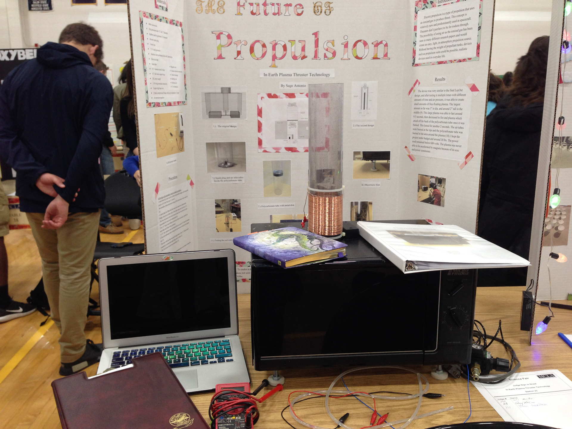 Low voltage electric thruster that accelerates microwave-make plasma out of a magnetized tube.